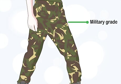 Choose military-grade camo pants for an authentic and protective style. Traditional camo pants are available at military supply stores. They are typically made from thick material and have several pockets. These are often worn by hunters or members of the military, but you can also style them with day-to-day looks. These are great to wear in the winter because their thick material protects you from the cold. To find a military supply store, search online for nearby locations.