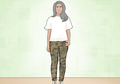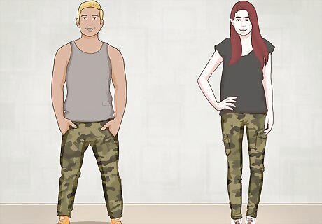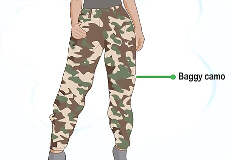 Get baggy camo pants for a relaxed statement piece. Camo pants are known for their loud prints, making them great statement pieces. Baggy-style pants work great as a statement because of their relaxed, casual appearance. Purchase these if you want to rock a military style as your statement. You can purchase these from retail stores or military supply stores. Go with either tailored leg, jogger style pants or straight-legged baggy styles.