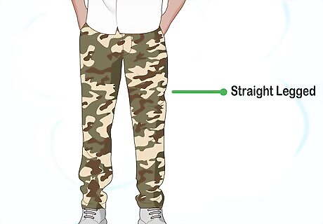 Select a pair of straight-legged camo pants so you can dress them up. In addition to tailored and baggy camo pants, you can also find styles with a wider leg which look great when styled for business casual outfits. While this may not be appropriate for every office environment, straight legged camo pants look more mature and professional than other styles. Look for these in popular retail stores or department stores. You can also find them online. Some of these come in vintage or classic pant styles.