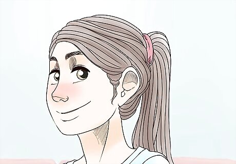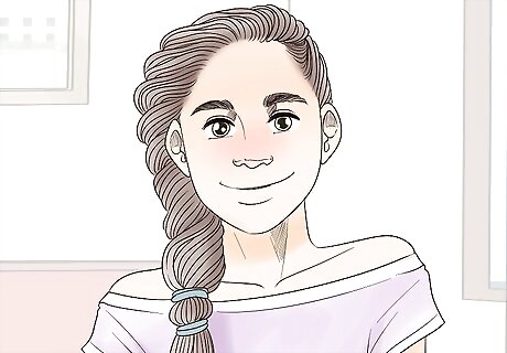 Flat twist all around your head to create an updo. Part your hair to the side and begin to flat twist from the thicker side of the part. When you reach your nape, twist the sections together into a rope braid and secure them with a hair tie. Repeat for the other side of the part. Wrap the left rope around your nape and pin it to the right flat twist. Repeat for the right side. Fold the ends of your hair under the hair tie for a nicer finish. You can also leave the rope braids loose, if you prefer.