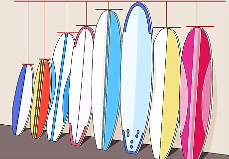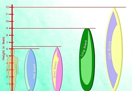 Try out a longboard while you're first learning. Longboards are the oldest and longest type of surfboard commonly available, ranging from 8 to 12 feet (2.4 to 3.7 m) in length. While they're not quite as maneuverable or versatile as other types of boards, longboards are often recommended for beginners because of their ease of use. The more volume a longboard has, the easier it is to balance and paddle into waves. This makes for more enjoyable experiences for most learners. If you've tried a longboard and want something a little more maneuverable, you should try a funboard. Funboards are hybrid boards which are a bit shorter than longboards, typically 7–8.5 feet (2.1–2.6 m). Funboards combine the smoothness and stability of a longboard with some of the agility of a shortboard.