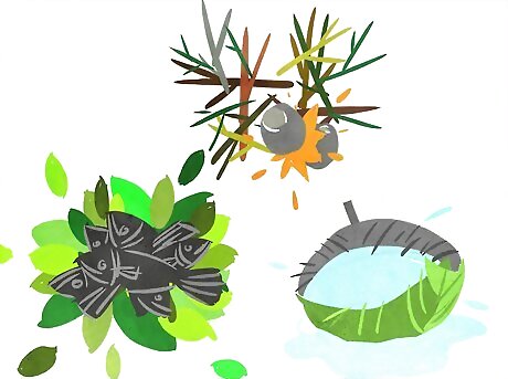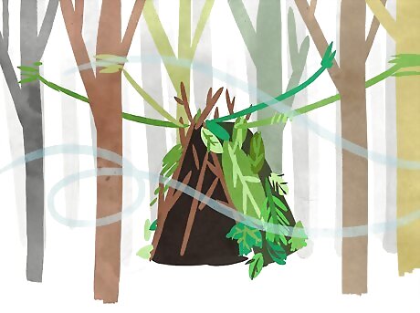 Create a shelter: Build it with a small silhouette in mind as the larger it is the more it will catch wind. Larger structures also waste physical resources and energy in building and upkeep. Also note that smaller shelters tend to trap more heat and heat up much easier than large shelters. Make sure to face it away from the prevailing wind. Also consider the fact that the shelter will need to drain any rain that comes.