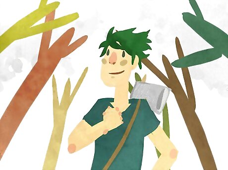 Search for large amounts of dry wood that can easily be dragged to your shelter. You can use the blunt end of your axe to snap softwood away from a tree. Larger softwoods tend to have a great many dry branches ideal for the making of fire. Also note that pine needles make ideal tinder. You will need this dry wood to produce safe food and water.