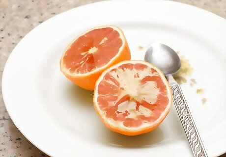 Put Truvia on halved grapefruit. Grapefruit is a food with many potential health benefits, but for many people it’s unpleasant without sweetener. Cut grapefruit in half and then sprinkle the inside with Truvia. Then take a spoon (or grapefruit spoon, if you have one), and eat the grapefruit by spooning out the edible, fleshy parts between the white inner walls.