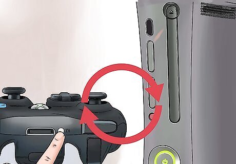 Press and release the “connect” button on your Xbox 360 console. On the 360 E and 360 S consoles, the “connect” button is located below and to the right of the power button. On the original Xbox console, the “connect” button is a small, round button located to the left of the power button.