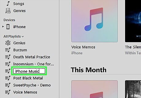 Name the playlist something appropriate such as "iPhone Music." This will allow you to remember that this playlist is specifically for transferring music to your iPhone.