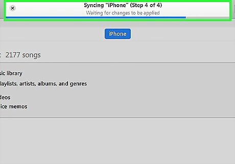 Click "Apply," located in the bottom left corner of the "Music" tab. Your iPhone should automatically start the sync.