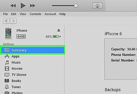 Select your iPhone. Depending on the version of iTunes that you have, your iPod will either be located in the left-hand menu under "Devices" or in the upper right corner of the iTunes window.