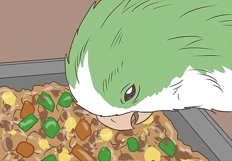 Provide a diverse diet. A repetitive daily diet of bird food pellets not only lacks the diversity to provide proper nutrition, but it may also cause boredom (and thus a lack of eating) in birds like Quakers. Make the pellets part of the diet but also mix in a variety of fruits and vegetables, and occasional seeds and nuts. Avoid feeding birds avocados, however, as this can be toxic to them; also skip chocolate, caffeine, and alcohol.