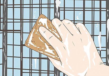 Clean up after your parrot frequently. Birds are messy—there is no way around it. In addition to droppings, Quakers will strew food scraps, destroyed toys, and bits of anything else they can get their beaks on throughout the cage and on your floor. Give the cage a quick cleanup daily, removing large bits of junk and replacing the newspaper liner (you may want to subscribe to a daily paper if you’re going to be a bird owner). Each week, give the cage a more thorough cleaning, scrubbing down the bars, and such. You may want to place the cage over an easier-to-clean floor surface, such as tile or hardwood rather than carpet.