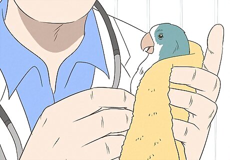 Find a good vet. Take your quaker for annual checks (and more as warranted) by a veterinarian, preferably one with a bird specialization. beak, claw, and feather health should be areas of particular focus for you and your vet, as problems in these areas are often indicators of larger issues. Quakers may be more susceptible to fatty liver disease, so don't let your bird become overweight. Limiting seeds and other high-fat foods may be necessary. Talk to your vet if you are concerned. Feather plucking is another disorder that can be common among Quakers and can have physical or behavioral causes. A good avian vet can help you with this issue as well.