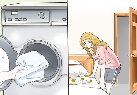 Assure that they are helping during the cleanup. If you are the parent or a caretaker of the teen, you may feel responsible in assuring that the mess after the bedwetting gets cleaned up. Though the bedwetting is not your teen’s fault, they certainly do have a responsibility in cleaning up the mess. Require that they wash the sheets and clean the mattress themselves after each time and assist them when necessary or should they ask for help. You may need to show them the first few times, as they may be unfamiliar with washing clothes or with mattress cleaning. Make sure they are keeping good hygiene practices, too. They should shower after having an incident.