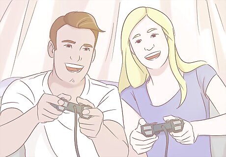 Play together. If your wife dislikes video games, invite her to join you in playing a 2-player game. You can also invite some friends over to play in multiplayer games. She may be hesitant to join you, but let her know it's important to you and that you'd like her to join. Invite her into a part of your world to experience it together. Say, “I'd like you to play with me this weekend. It would be nice for you to see what I enjoy and for us to experience it together.” Choose a game that's engaging and interactive. Have fun and maybe even invite a bit of competition! If you do begin to game together, don't make gaming the only time you spend with your wife. Notice her and give her attention outside of gaming.