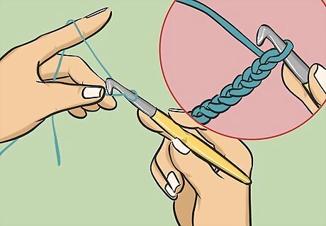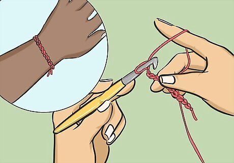 Make long necklaces and garlands with the chain stitch. Keep practicing the chain stitch with the child, creating long crocheted chains. You can then use the chains you make as festive garlands, or you can loop them around the child’s neck or wrist to make necklaces and bracelets. Make sure to tell the child to keep their stitches loose for the chain. In addition to being a cute fashion statement, most kids love wearing something they made themselves!