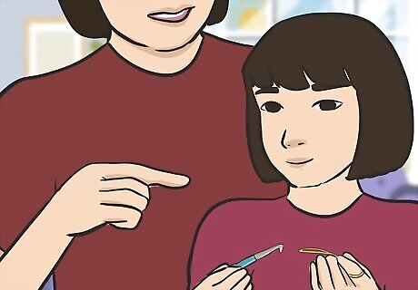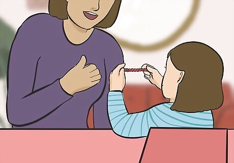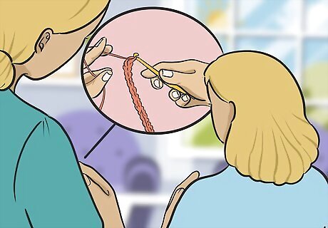 Ask the child to repeat the stitches you just made. Hand the yarn and hook to the child, then verbally coach them as they try to follow what you just did. If you need to, correct how they hold the hook, but encouraging the child to keep trying, even if they don’t figure it out right away. The best way to learn crochet is to do it yourself, so you want the child to get hands-on experience as early in the lesson as possible.