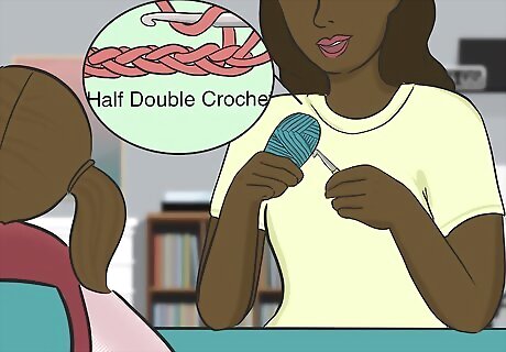 Work on more complicated stitches as the child improves. Once the child can successfully do a chain stitch and a single stitch, you can start teaching them more complex techniques. Gradually increase the difficulty of the projects you work on together, incorporating a new stitch each time. Some stitches you might teach include double crochet, half double crochet, and triple crochet. As your child gets more comfortable with these essential stitches, you can teach more complex stitches that combine several basic stitches, such as the blanket stitch.
