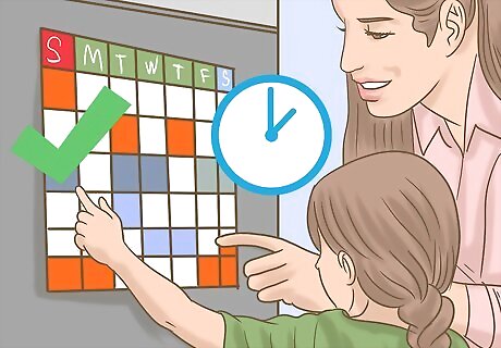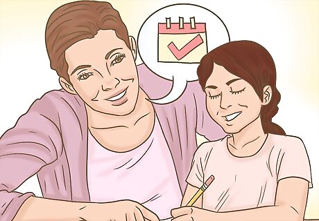 Create charts to help your kids manage their tasks. Use words and images to help your child visualize tasks such as brushing their teeth, combing their hair, and putting away their toys. Try making weekly charts with boxes for check marks or stickers next to each task. Check the box or add a sticker for each day they accomplish a task. Charts help introduce children to deadlines and duties. If you’d like, offer a small reward at the end of the week if every box has a check mark or sticker.