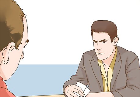 Look for intimidation. When a player is trying to bluff you, their natural instinct is to try to look intimidating to encourage you to fold your hand away. Intimidation tactics may include slamming down chips, talking loud, and staring you down. Staring at you directly in the eyes is often an indicator of a bluff. While there are a number of reasons another play may look you directly in the eyes, someone holding eye contact is often trying to keep focus on them and intimidate you.