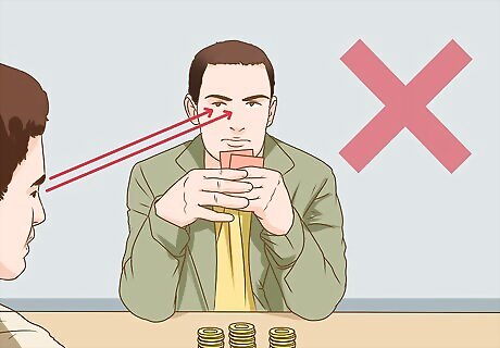 Don't look at their eyes. The common advice is to look someone in the eye to see if they are lying. This is not a tested strategy, however. Skilled players have no problems looking someone in the eye while bluffing. A new or unskilled player might glance away or dilate their pupils some when bluffing, but these are often stress responses. When a player learns to control the stress that comes with bluffing, these signals become easy to control.