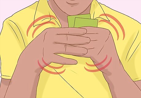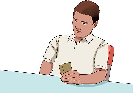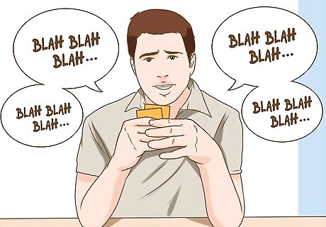 Monitor their speaking patterns. When a quiet person at the game suddenly starts talking, it's time to pay attention. Introverted people often talk less because social interaction may stress them out. This means that if a quiet opponent is talking, they are likely relaxed. A relaxed opponent is likely not bluffing and may even have a strong hand. On the other hand, if a more social player suddenly gets quiet, they may be devoting most of their attention to their hand. Chances are that they have something good and need to think about how to play it.
