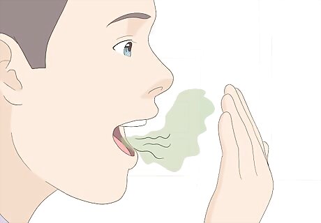 Smell your breath. While bad breath does not occur in all patients, the infection caused by streptococcus bacteria can often cause notably bad breath. This occurs as a result of the reproduction of the bacteria. While potent, the exact smell can be difficult to describe. Some state that it smells like metal or hospitals, while others compare it to rotten meat. Regardless of the exact odor, "strep breath" will smell stronger and worse than normal bad breath. Due to the somewhat subjective nature of “bad breath,” this is not really a way to diagnose strep throat, but rather a commonly seen association.