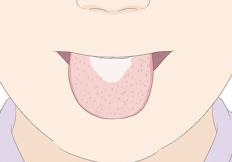 Check your tongue. People with strep throat often have a prickly coating of tiny red dots along their tongue, especially toward the back of the mouth. Most people compare this prickly coating to the outside of a strawberry. These red dots can either be bright red or dark red. They generally appear to be inflamed.