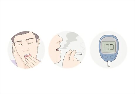 Assess whether you have any health risk factors that might make more susceptible to strep throat. Immunocompromised individuals, those with the decreased ability to fight off infection, may be more at risk. Other infections or illnesses can also increase the chances that you have strep. Your immune system may be compromised simply due to fatigue. States of extreme exertion or exercise (such as running a marathon) can also tax your body. As your body focuses on recovery, it’s ability to fight infection may be impeded. Simply put, an exhausted body is focused on recovery and may not be able to defend itself as efficiently. Smoking can cause damage to your protective mucosa in the mouth and allow for easier colonization of bacteria. Oral Sex can expose your oral cavity to be more directly exposed to bacteria. Diabetes decreases the ability of your body to fight infection.