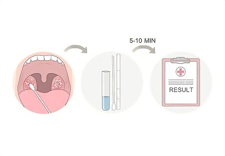 Ask the doctor for a rapid strep test. The Centor criteria has not proven effective in predicting antibiotic treatment-worthy infection in children. A rapid strep antigen test may be performed in the office and only takes a few minutes to complete. The doctor will use a cotton swab to sample the fluids in the back of your throat for bacteria. These fluids will then be tested in the office, and within 5 to 10 minutes, you should know the results.