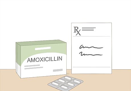 Take your antibiotics if prescribed by your doctor. Strep throat is a bacterial infection and, as such, is treated effectively with antibiotics. If you have any known allergies to antibiotics (such as penicillin), it is important to let your doctor know so he or she can provide you with appropriate alternatives. A typical course of antibiotics is usually up to 10 days (depending on specific antibiotics decided by your doctor). Be sure to take your antibiotics for the fully prescribed time, even if you feel better before you finish the full course. Penicillin, amoxicillin, cephalosporins, and azithromycin are all common antibiotics that can be used to treat an infection. Penicillin is used often and effectively in the treatment of strep throat. However, some individuals may have allergic reactions to this medication. You should let your doctor know if you are aware of this possible side effect. Amoxicillin is another drug of choice for strep throat with good results. It is similar to penicillin in effectiveness and can withstand the gastric acid in your stomach better before being absorbed into your system. Additionally, it has a broader activity spectrum than penicillin. Azithromycin, erythromycin, or cephalosporins are used as an alternative to penicillin when a person is known to have allergies to penicillin. Note that erythromycin has higher rates of gastrointestinal side effects in people.