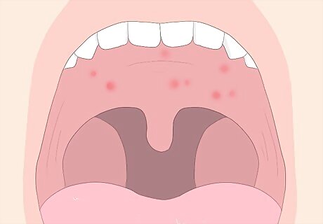 Check the back of your throat. Many who suffer from strep throat develop petechiae, red spots on the soft or hard palate (on the roof of the mouth, near the back).