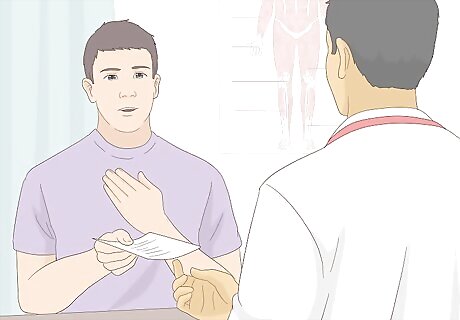 Let the doctor know about your concerns. Bring the doctor a thorough list of your symptoms and let them know that you suspect strep might be to blame. Your doctor will usually check for some of the most telling signs of the disease. Expect your doctor to take your temperature. Also expect your doctor to look inside your throat with a light. He or she will most likely want to check for swollen tonsils, a red bumpy tongue rash, or white or yellow spots in the back of the throat.