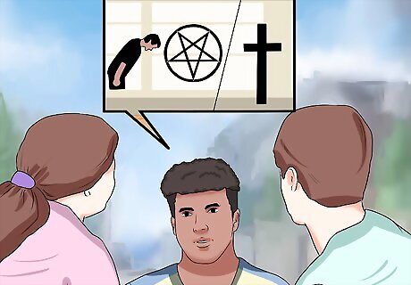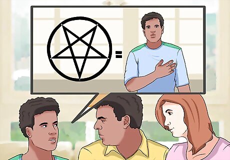 Explain the difference between Satanism and devil worship. When your parents hear the word "Satanist," they may immediately assume Satanism is on par with devil worship. Calmly explain to your parents that most Satanists do not believe in supernatural deities, and the concept of Satan is mostly metaphorical. This may ease a lot of your parents' concerns. Explain that Satanists believe fantasies are important to experiencing and making sense of the human condition. Symbolism and metaphor allow people to build meaning. To Satanists, Satan represents embracing worldly pleasures over supernatural deities and abstract beliefs. It also signifies an acceptance that there is little inherent meaning in the universe. It can be helpful to tell your parents many Satanists feel they are essentially atheists in many respects. The meaning of the term atheism is more readily understood, and may be helpful to use when explaining Satanism to your parents. Explain Satanists do not literally attempt to raise the devil, and any connection felt with Satan is an extension of the self. Satan is more of an alter-ego for Satanists than a literal entity that is worshipped.