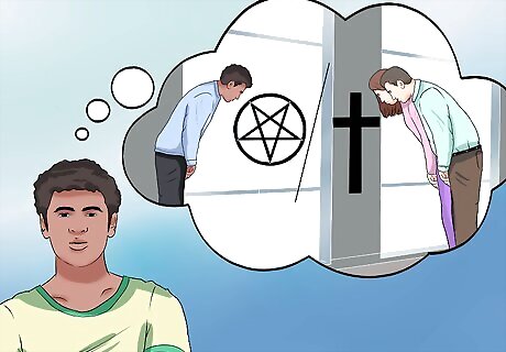 Search for common ground. When it comes to navigating religious differences, finding common ground can be very helpful. Have your parents make a list of their religion's belief systems. Make a list of your beliefs as a Satanist. Compare notes. You may be surprised what you find in common. After examining the list, approach your parents and tell them you want to find common ground. You could say something like, "As Catholics, you and dad believe in the Golden Rule. Satanists also believe in that rule. The only difference is, we believe in doing it for ourselves rather than a higher power. However, it's fundamentally the same thing." Your parents may be comforted to find how much Satanism has in common with other religious beliefs. This may help smooth over misconceptions and allow your parents to accept you for who you are.