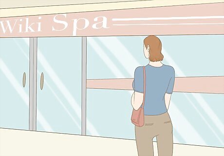 Shop around at different spas to gather information about deals and pricing. Some spas offer discounts on bridal parties, while others might not be big enough to accommodate your guest list. Call or walk into the spa you have in mind and ask if they can treat a large group of people with multiple services. Ask about dates and times available to see if they have anything open for your date. Some spas have packages that you can purchase. Pick out services like mani/pedis, facials, massages, or even yoga if you think your guests will like it.