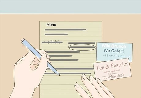 Plan the menu yourself or book a catering company. Spa days can be exhausting, so your guests might want some pick-me-ups in between treatments. Consider buying healthy, bite-sized food like finger sandwiches or stuffed mushrooms. Order pastries from a bakery and stock up on wine or cocktail ingredients to serve your guests. If you’re not sure what kind of food everyone likes, check with the bride to find out her favorites.Tip: Some guests may also offer to bring desserts or drinks. Take them up on it to remove some of the burden from your shoulders. If you are using a catering service, contact them a few months in advance. Have them deliver the food on the day of the shower.