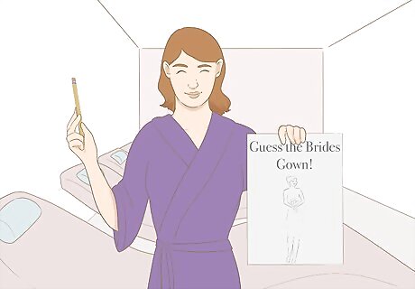 Come up with some bridal shower activities. Most of the bridal shower will be spent relaxing at the spa, but some of it should focus on the bride. Come up with 1 or 2 games for your guests to play that center around the bride and her upcoming wedding. Make sure your guests are on a loose schedule that has them playing the games about 1 hour into the party. Don’t choose any activities that need a lot of space or movement. Stick with the relaxing vibe of the spa. Popular bridal shower games include a gift Bingo game, where guests write down what gifts they think the bride will receive on a Bingo sheet, and a romantic movie quiz, where guests try to guess as many movie titles based on quotes as they can.