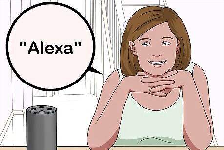 Say, "Alexa". Say the wake command to wake Alexa and she will begin listening for your next command. The default wake command is "Alexa," but if have set a different wake word such as "Echo," "Amazon," or some other command, then use the wake command you previously set.