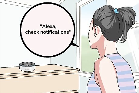 Ask Alexa to check your notifications. When you have a notification, the light ring on your Alexa device will pulse yellow. You can check a received shipping notification by saying, "Alexa, check notifications" and she will list all your unread/unheard notifications. Unless you changed your Amazon settings, you will receive tracking notifications when your order is out for delivery, delivered, or delayed.