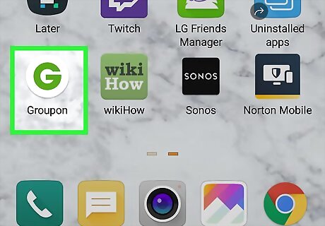 Open the Groupon app. The Groupon app icon is a large letter “G” on a white background.