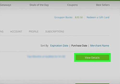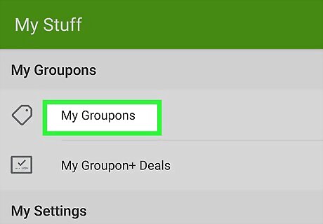 Select My Groupons. At the top of the “My Stuff” page, you should see an option to select “My Groupons” next to an icon of a price tag.