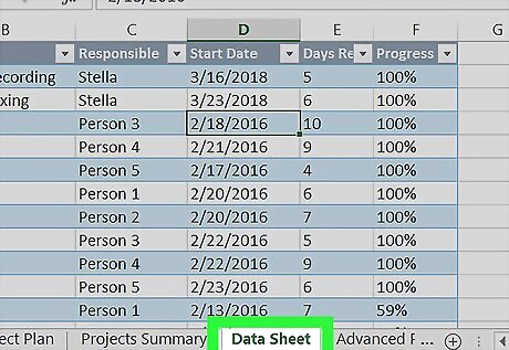 Click the Data Sheet sheet. It’s one of the sheets at the bottom of the workbook.