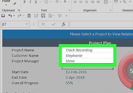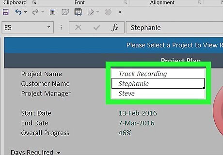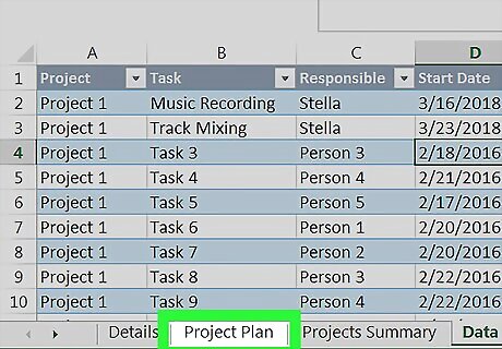 Click the Project Plan sheet. It’s at the bottom of the workbook. This opens the details for your first project.