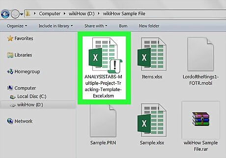 Double-click the file. It’s the file called ANAYLSISTABS-Multiple-Project-Tracking-Template-Excel.xslm in the Downloads folder. The file will now open in Excel.