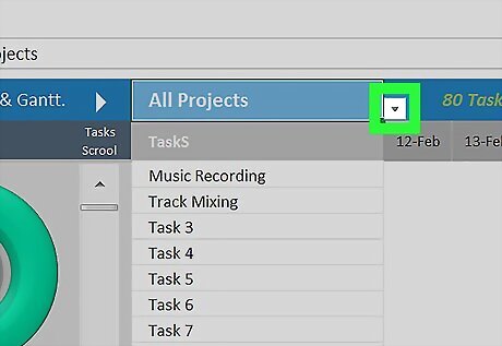 Click the small arrow beside the “All Projects” menu. It’s above the right panel. A list of additional projects will appear.