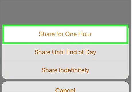 Select an amount of time to share your location. If you want the person to always be able to find you, select Share Indefinitely. Otherwise, select another option. This sends your friend your location and a sharing request.