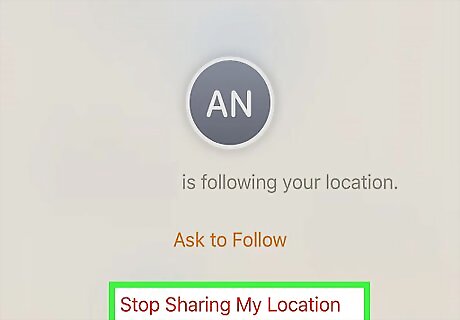 Stop sharing your location (optional). You can stop sharing your location at any time. To do so, tap Edit at the top-left corner of the map, and then choose one of the following options: To stop sharing with a specific person, tap the red circle with a white dash inside next to the their name, then tap Remove. To stop sharing with everyone, slide the ″Share My Location″ switch to the Off (white) position.