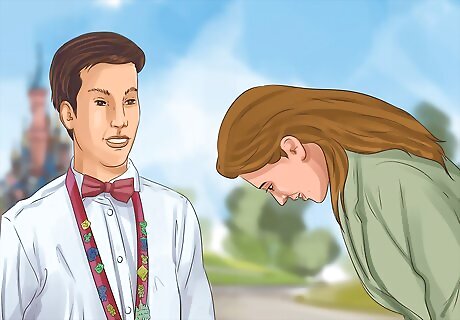 Approach the Cast Member and politely ask to see their pins. Refrain from reaching out and touching the Cast Member’s pins or lanyard. If you need a closer look at their pins, the Cast Member can bring it toward you for a better view. Say, "Can I please have a closer look at your pins?" and the Cast Member will hold them out to you.