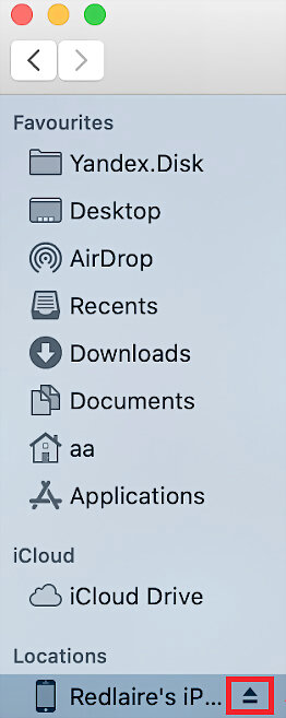 Click the Finder menu bar and select your iPhone or iPad.