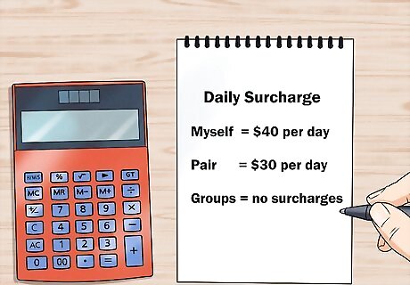 Pick out a hotel that fits your price range. The standard visa fee includes 50 dollars a night for staying at a three-star hotel. If you want to stay in a four or five-star hotel, you’ll need to pay the daily difference. For example, if it costs 400 dollars a night to stay at a five-star hotel, you subtract 50 dollars from the visa and pay 350 dollars per night out of pocket. The average extra cost for a five-star hotel is about 300 dollars more per night, depending on the hotel and time of year. You cannot downgrade to a one or two-star hotel to save money on your visa. If you are on a tight budget, you can join tour groups instead of going on a private tour. Some companies offer visas for as little as 200 dollars per day, but the average discount for a tour group visa is about 10 percent off. This means you’d be paying between 220 and 230 dollars per day.