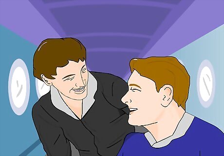 Smile. Smiling is clinically proven to reduce anxiety and stimulate the body's relaxation response. Even if you’re nervous, try smiling to yourself or at the people around you. It really can help you feel better and reduce your heartrate.